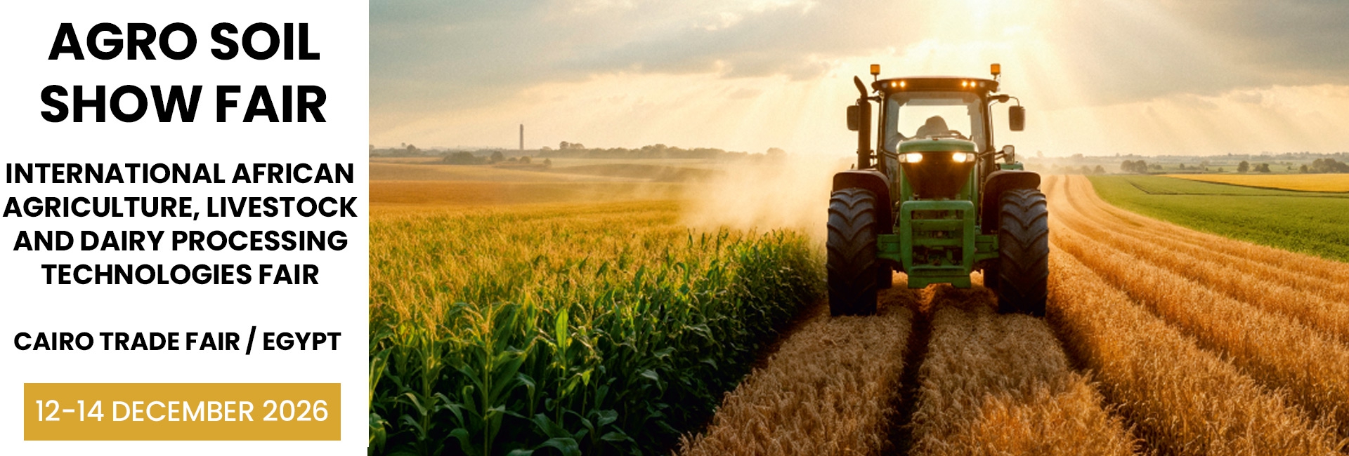 The AGRO SOIL SHOW FAIR, an international exhibition of African agriculture, livestock, and dairy products, will be held at the Cairo International Fairgrounds from December 12-14, 2026. Its aim is to provide farmers and dairy industry professionals from Egypt, Africa, and the Middle East with the opportunity to closely examine, evaluate, purchase, and sell modern machinery, tools, equipment, smart farming technologies, and technological advancements in the sector, showcased by national and interna-tional suppliers. The fair will bring together leading buyers and distributors from Egypt, Africa, and the Middle East under one roof.
